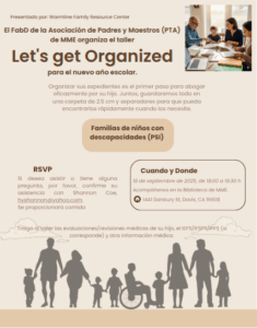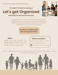 What: Organizing your records is the first step to advocating effectively for your child. Together we’ll put everything in a one-inch binder and dividers so that you can find them quickly when the documents are needed.