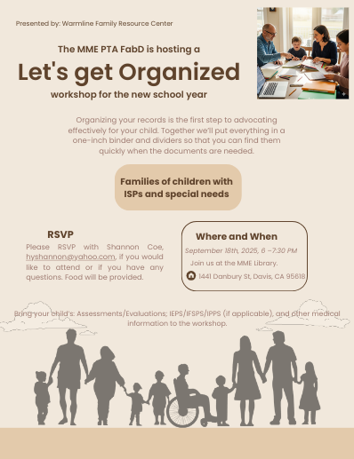Bring your child’s: Assessments/Evaluations; IEPS/IFSPS/IPPS (if applicable), and other medical information to the workshop.