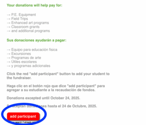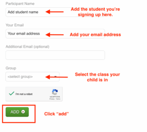 Enter child/student information. Once added, friends and family can contribute by searching by the child/student name.